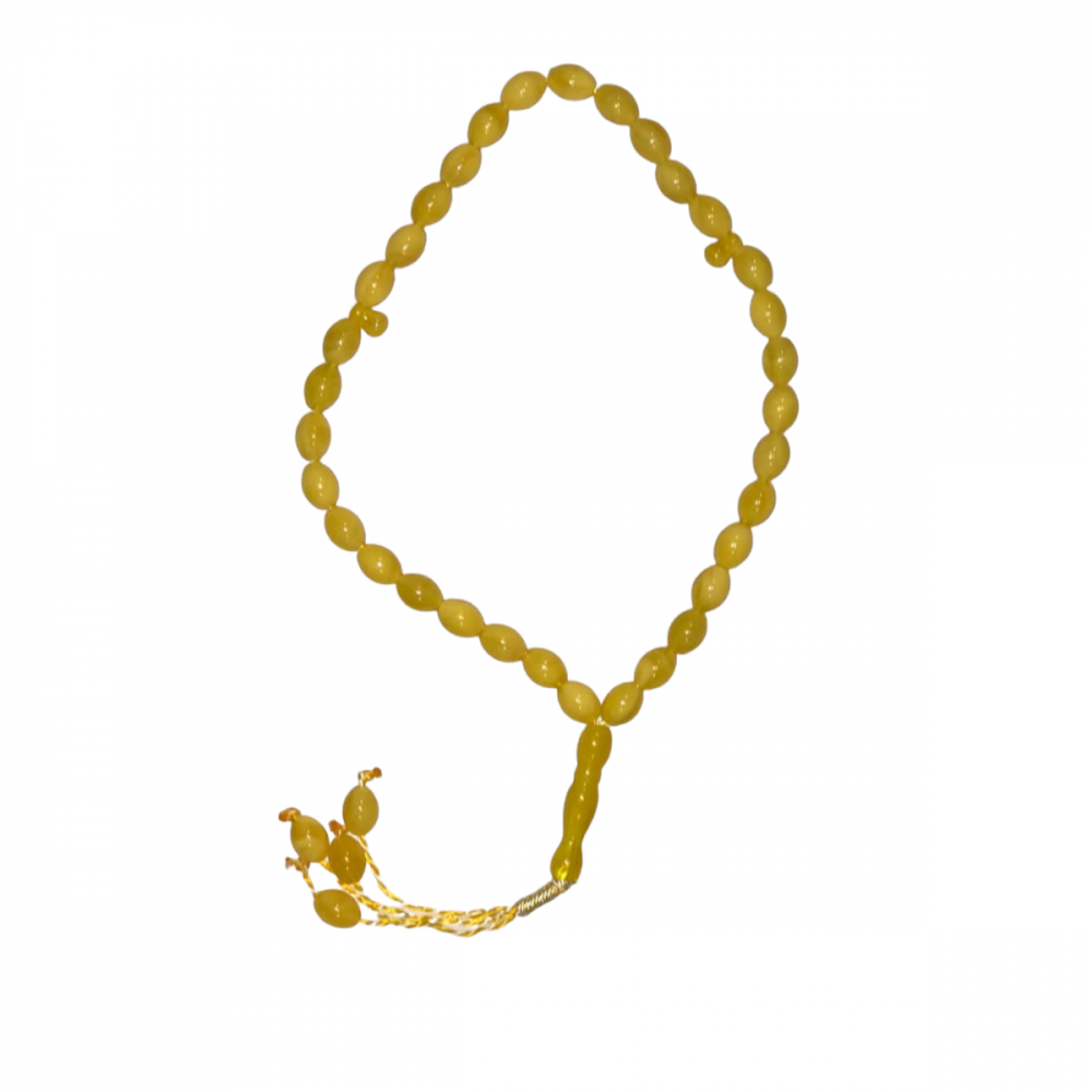 • تتميز الخرزات بتدرج ألوان أصفر يمنح المسبحة حضورًا بصريًا لافتًا عند استخدامها أو تقديمها للآخرين.